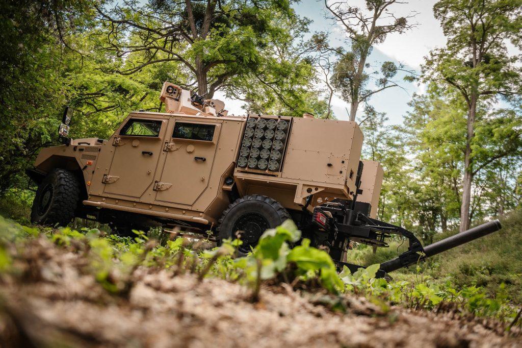 At the ongoing show, the Sherpa is presented with a Hornet Lite RCWS fitted with a 7.62mm MG for the vehicle's self-protection.