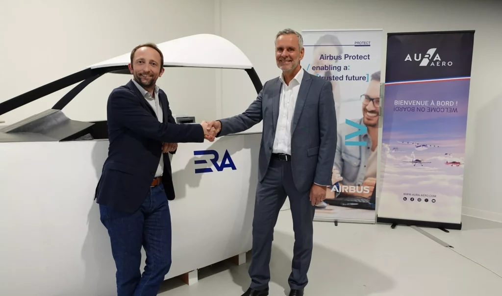 Aura Aero and Airbus Protect have signed a cooperation agreement in view of the certification of ERA, the next regional transport 19-seater hybrid-electric aircraft developed by Aura Aero.