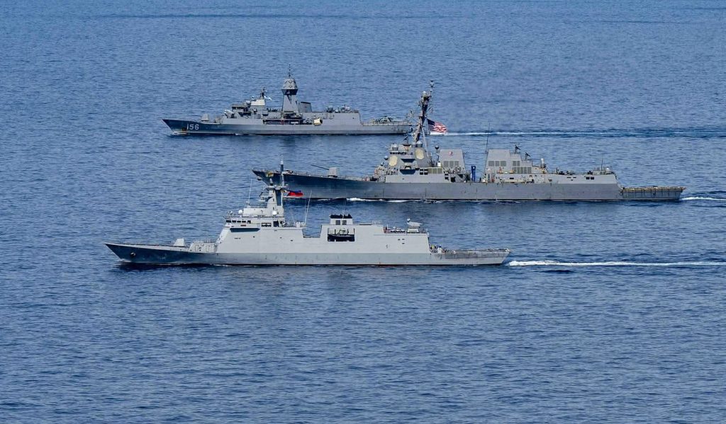 During the drills, participating navies rehearsed communication exercises, maritime domain awareness, joint patrol, division tactics, photo exercise, replenishment at sea, and hotwash.