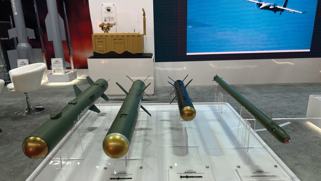 Turkish weapons company Roketsan is showcasing its broad range of missile equipment at the ongoing show including its new generation of anti-ship missiles such as the ATMACA which has a range of 250 km and the CAKIR which has a range of 100 km.