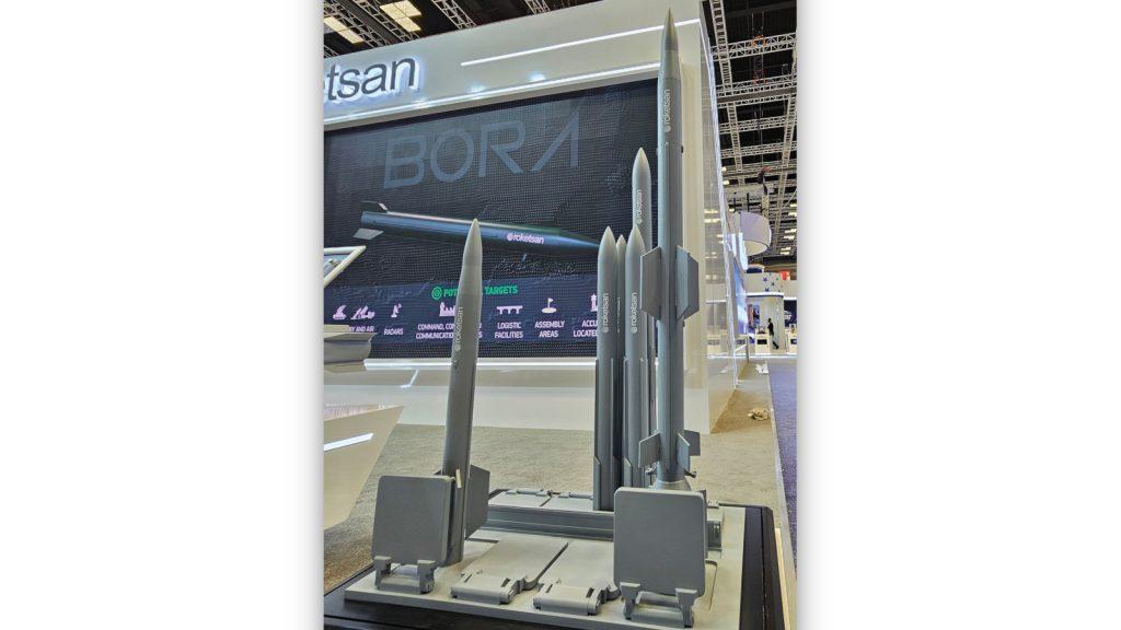 Roketsan is displaying a model of the MIDLAS National Vertical Launcher System. Every MIDLAS module has eight cells which are capable of containing one missile canister in each cell, compatible with quad-pack canisters. The missiles that can be carried are Roketsan’s HISAR A+ and HISAR 0+ (RF). This land/maritime weapon system can engage targets out to ranges of more than 25 km and at altitudes above 15 km. It can destroy targets such as aircraft, helicopters, armed drones and cruise missiles.