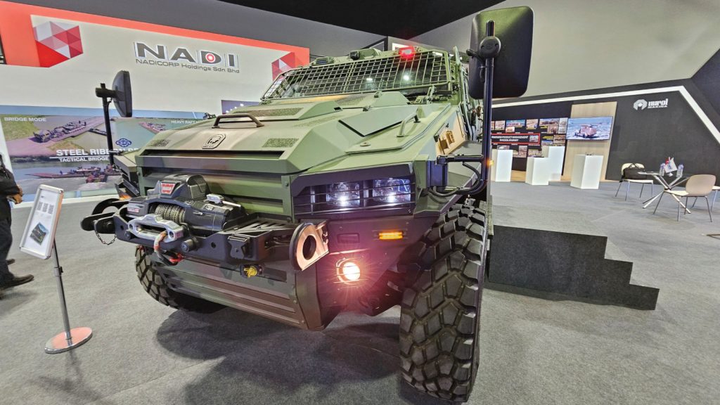 Company officials confirmed to Daily News that this is the first time the NMS 4X4 armoured vehicle is being shown in public in Royal Malaysian Army camouflage. Nurol Makina and Nadicorp (Badanbas) inked a contract for supply of the NMS 4x4 in March 2022, during the previous edition of DSA. Deliveries were slated to conclude this year.