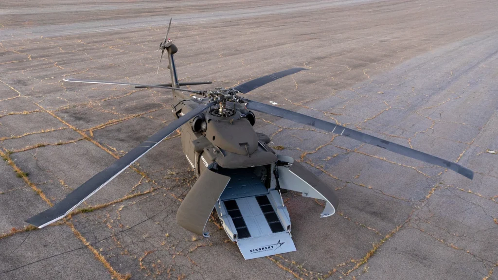 Sikorsky, a Lockheed Martin company, has converted a UH-60L Black Hawk helicopter into an autonomous unmanned aircraft system (UAS) designated the S-70UAS U-Hawk. Developed from concept to prototype in about 10 months, the aircraft features a redesigned fuselage that provides 25% more cargo space than the standard Black Hawk. The company replaced the cockpit with actuated clamshell doors and a loading ramp, and installed a third-generation fly-by-wire control system integrated with its MATRIX autonomy technology. The result is an aircraft configured to conduct uncrewed resupply and air assault missions.