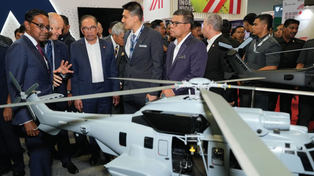 After speaking at the opening ceremony of the ongoing show, Malaysia's Prime Minister Datuk Seri Anwar Ibrahim stopped by the Airbus Helicopters booth, along with the country’s Minister of Home Affairs Datuk Seri Saifuddin Nasution Ismail. Vincent Dubrule, Head of Asia Pacific at Airbus Helicopters, gave the two dignitaries a detailed presentation about the merits of the combat-proven multi-role H225M helicopter, which is one of the mainstays of the Royal Malaysian Air Force (RMAF) fleet. Burhanudin Noordin Ali, Airbus Chief Representative for Malaysia, was also present.